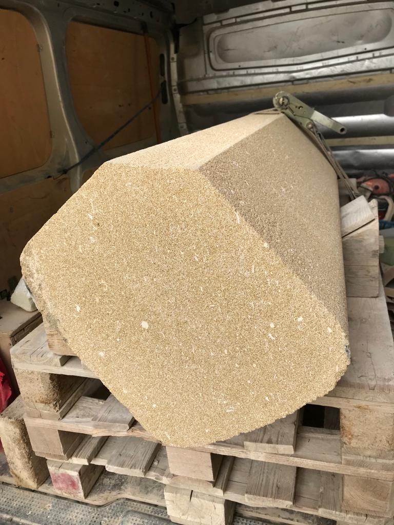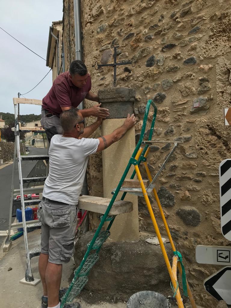 Suite à une manœuvre d’un transporteur, la croix historique de la place a été détruite. Frédéric Matan, tailleur de pierre meilleur ouvrier de France a refait entièrement le socle de la croix qui a pu être replacé à l’identique.