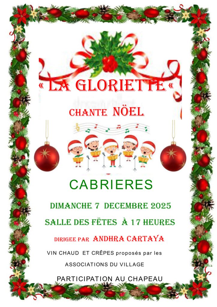 Concert de Noël avec la chorale de la Gloriette de Fontès à la salle des fêtes le dimanche 7 décembre à 17h00